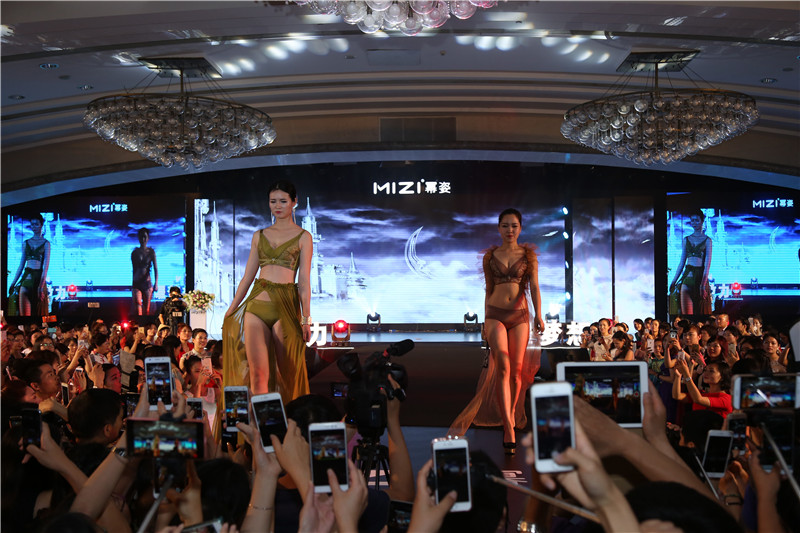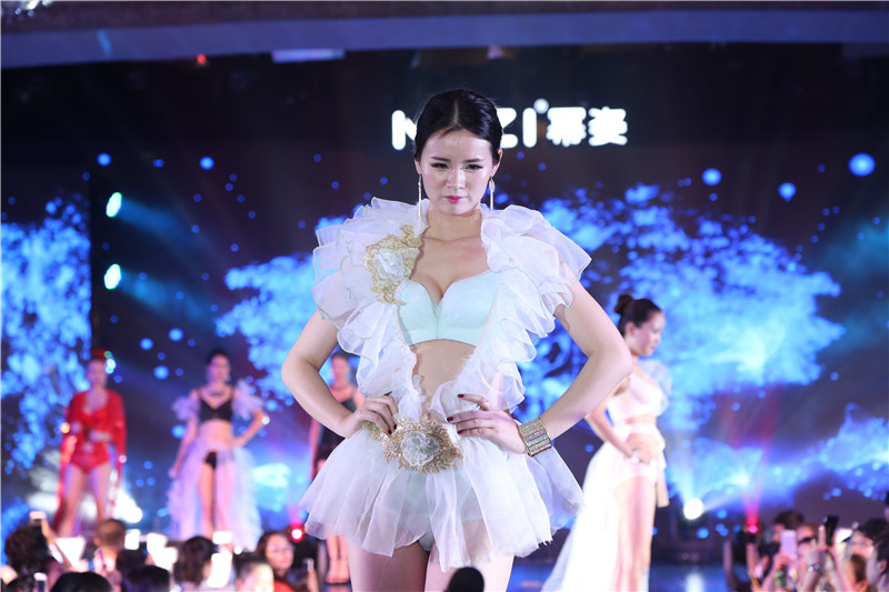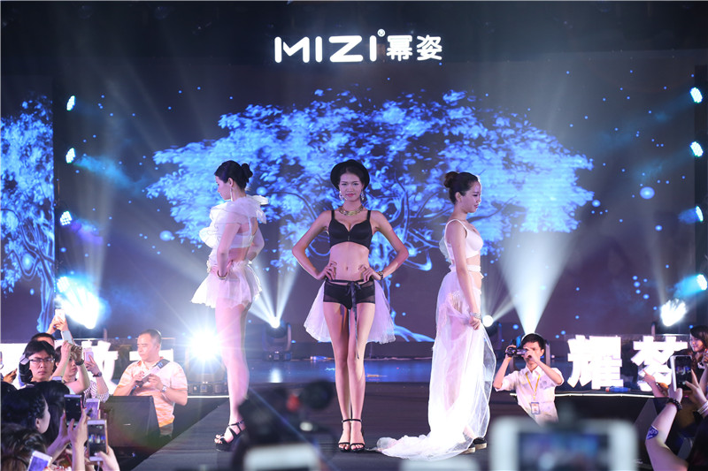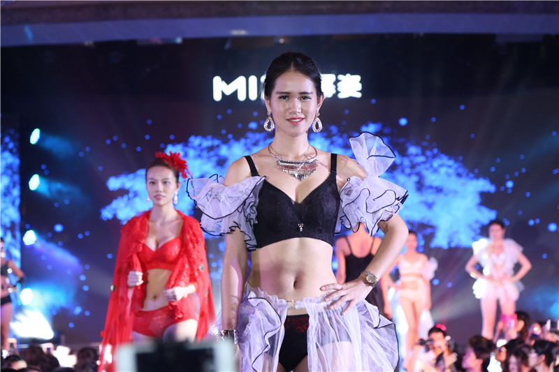 一位身穿冪姿內衣的模特獨領風騷走上舞臺,目光所及、魅力四射,引領其他內衣模特陸續走上舞臺,配上節奏感強烈的音樂和LED高樓大廈動態背景,瞬間燃爆全場氣氛。在場代理、媒體拍攝者踴躍沖到T臺最前端爭搶最佳位置觀望拍照。
