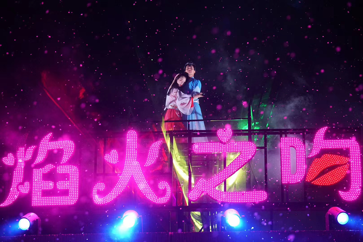 江西萬載古城《焰火之吻》實景演出